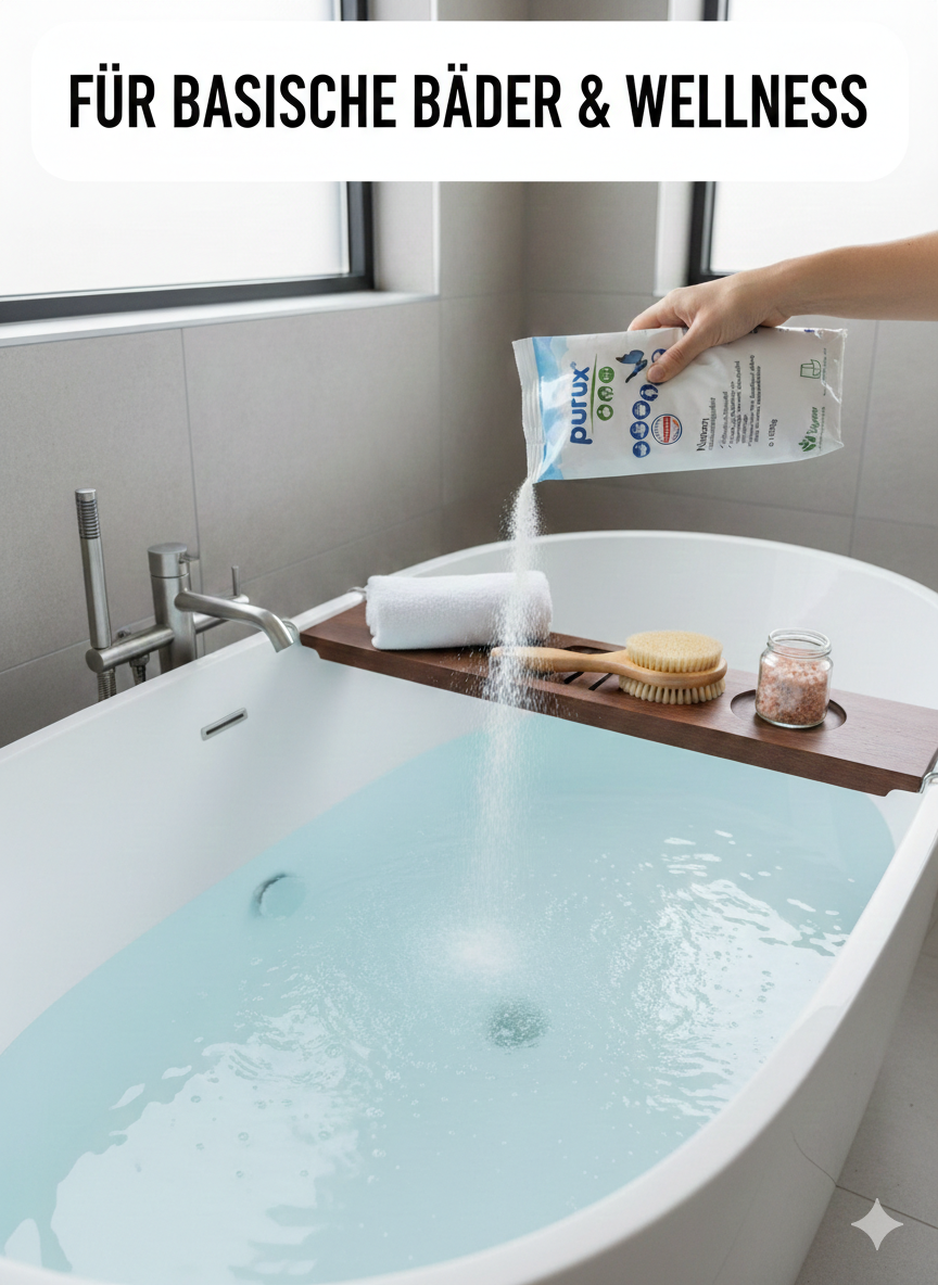 Es geht auch einfacher. Mit dem purux Natron im 1-kg-Beutel holen Sie sich ein echtes Traditions-Hausmittel in modernster Qualität nach Hause. Ob in der Küche, im Bad oder im gesamten Haushalt: Das Natriumbicarbonat (E500ii) ist die chemiefreie Antwort auf fast jede Herausforderung im Alltag.